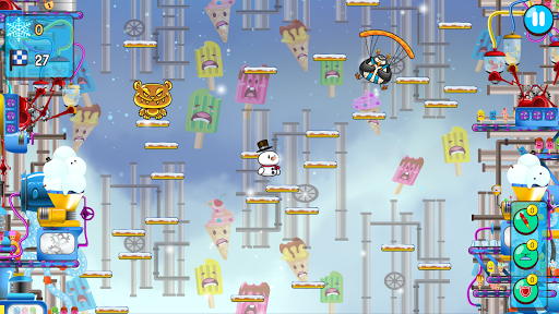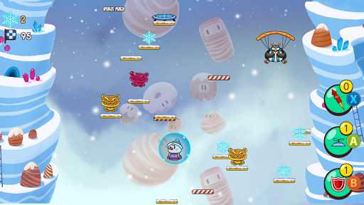 Keep jumping through this endless frozen adventure collecting snowflake coins while avoiding bad guys. Use your coins get powerups and tries on the Snowman Prize Machine. You never know which snow character you will win because there are dozens to collect.