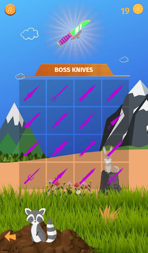 Throw the knifes into the logs to break them. Slash the apples and unlock new knives. Each 5th stage is defended by a boss - beat them to get exclusive knifes!