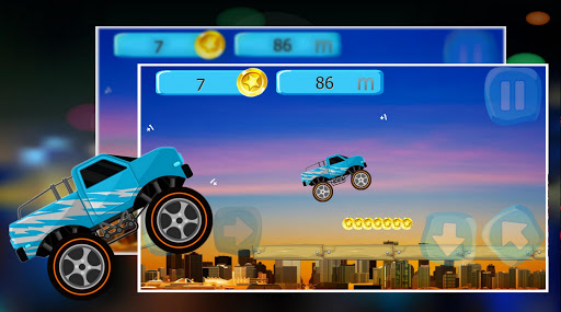 Monster truck hill climb game has HD graphics and very easy to understand game but difficult to master. Drive through all obstacles to get to the finish level. Game has infinitely number of randomly built levels. Enjoy it! Avoid all the obstacles on your way, control your Monster Truck with Physics because trucks to bounce, drift and tire slips as real driving. Different background and thrilling game play is the uniqueness of this big cargo game. It’s very addictive and for every age of player. You will enjoy the fast action of monster truck and insane stunts while climbing hills.