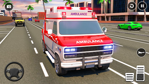 You can control your ambulance vehicle with the steering wheel or direction keys. Don't forget to turn on your sirens while going on missions.