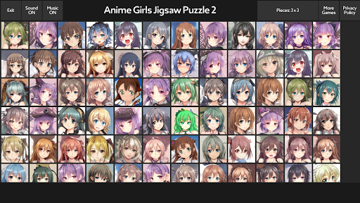 A jigsaw puzzle game with hundreds of anime portraits of kawaii Japanese girls. Everything is free, nothing is locked.