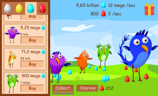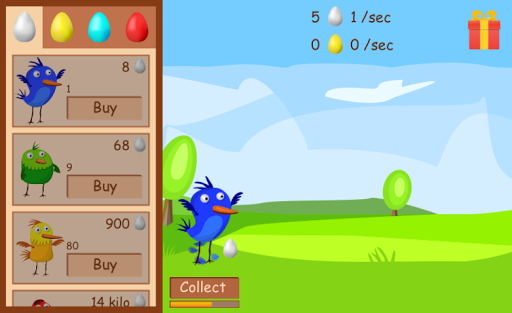 Each bird carries either white, or gold, or red, or blue eggs. The goal of the game is to buy all the birds.