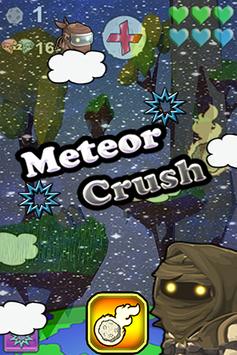 Meteor Crush the game where you crush meteors falling from the sky to save the earth. The earth will be blown to bits if any meteor hits the ground. To crush the meteor, you have to tap on the meteor at the right time before it falls to earth.