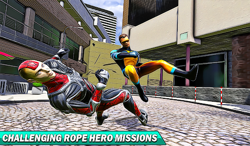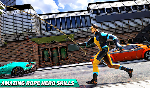Use a super rope here in the super rope hero gangster crime game and climb over buildings and fly over the vice town