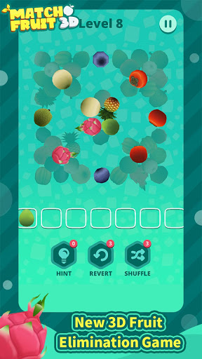 Match three identical 3D fruit elements to eliminate them, and pass the level after all the fruits are matched and eliminated. Simple and easy to use, let everyone find the fun of the game.