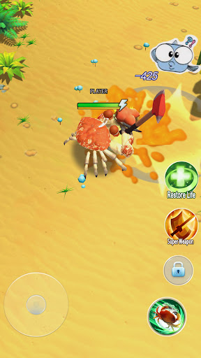 Players control their own big crabs in the game. The gameplay is very simple. Everyone randomly appears on the island, looking for the weapons scattered everywhere, using various weapons to fight, and solving the enemies that appear in front of you, the game The gameplay is very exciting, control the crabs to a game with only one winner!