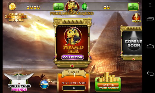 Slots - Pharaoh's Legend bring you the legend and treasure from the mystery ancient Pharaoh! Enjoy the endless fun from this amazing slot machine! You can also compete for the great jackpot with players all over the world!