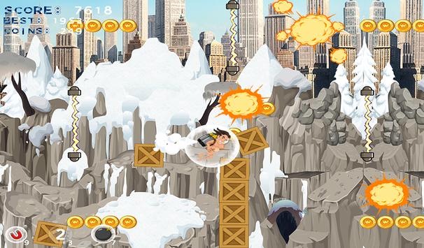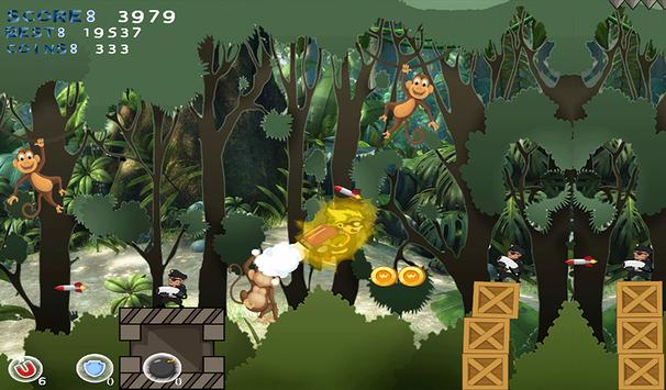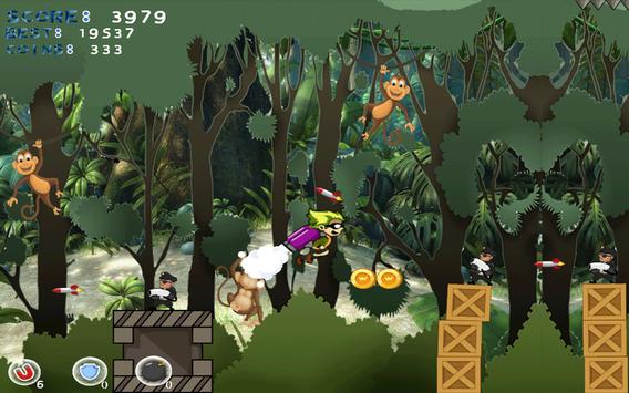 A hero son of English nobles who lost his life in the jungle, The hero is raised by a tribe of great banana monkeys that teaches him to survive in the jungle. You must help him to escape the jungle to see his father and his princess, for that he received a jetpack as gifts of Christmas to help him to escape the jungle.