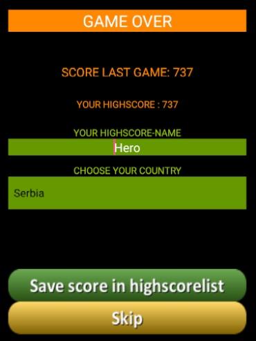 There is a highscore list where you can enter your nickname and your land to show others your score. You can list the highscores from today or from all time, wordwide, only for your country or for any country in the world!