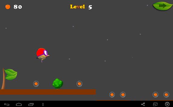 The bird would collect more apples. But there are many problems; lock, fungus, etc. Please help the cute bird by running and jumping.