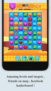 Jelly crush fruits gives you the opportunity to see all your friends that facebook or connected with the map so that you always know where your opponents crush the jelly fruits