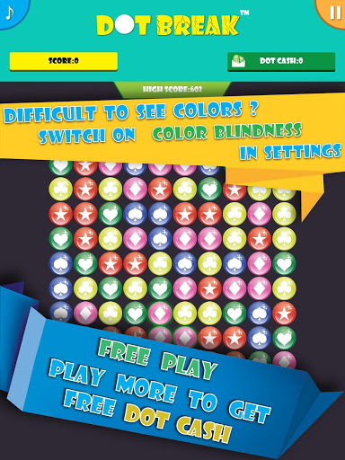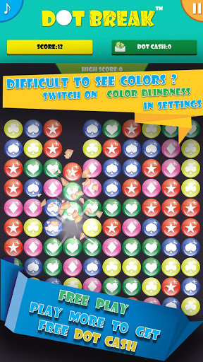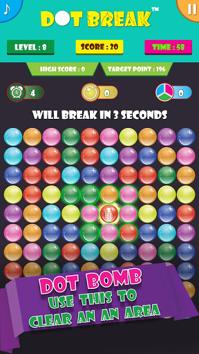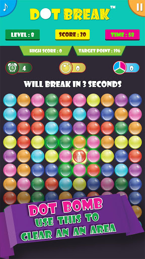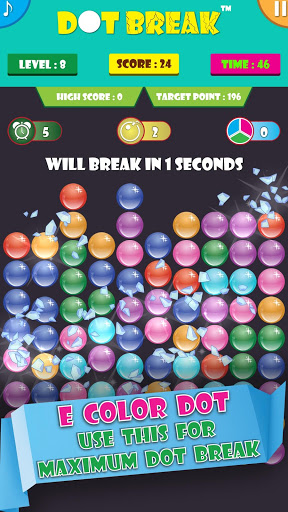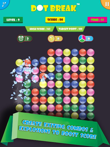 Click two or more adjacent Dots or Bubbles to break it ,the more you break the more points you will get .