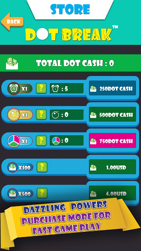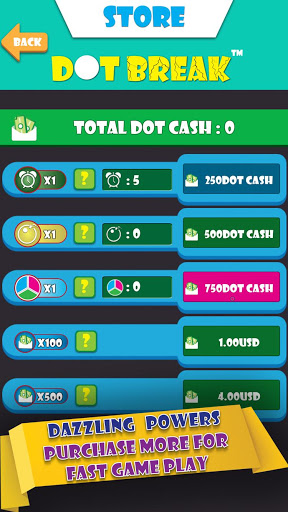 Dot Cash is the virtual money used in this game for purchasing the powers and skipping the levels .