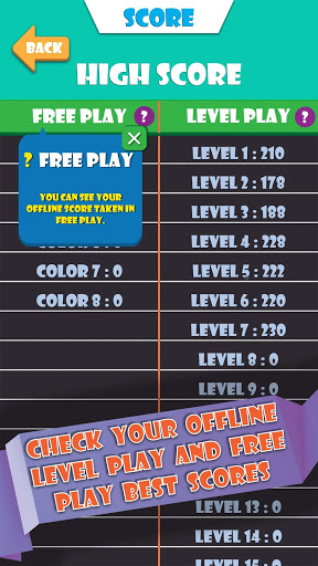 ✓ Separate Offline Score Board for Free play and Level Play for checking your Best score .