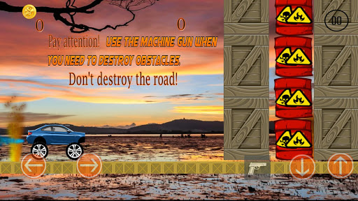 The car contains a gun that destroys the wooden boxes so that you can race and destroy the boxes.
