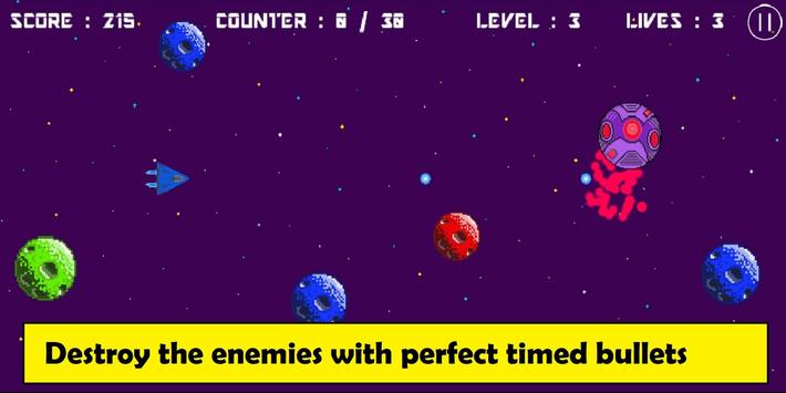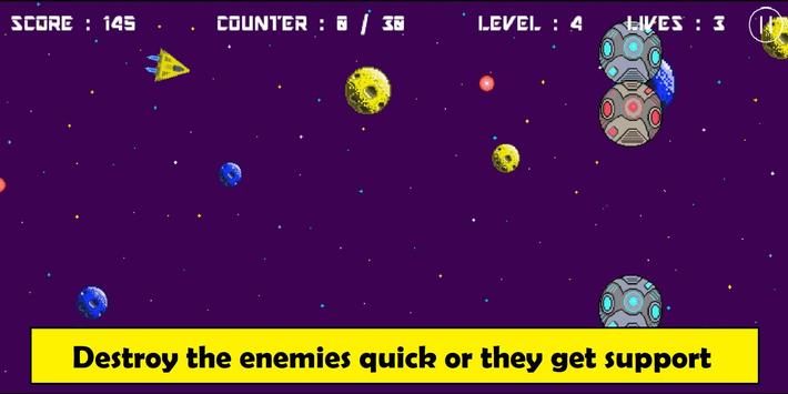 In Asteroid Booster you need quick responses in order to dodge the asteroids and perfect timing to shoot your bullets to destroy the enemy spaceships. Learn to control the jet perfectly to attack your enemies from different angles.