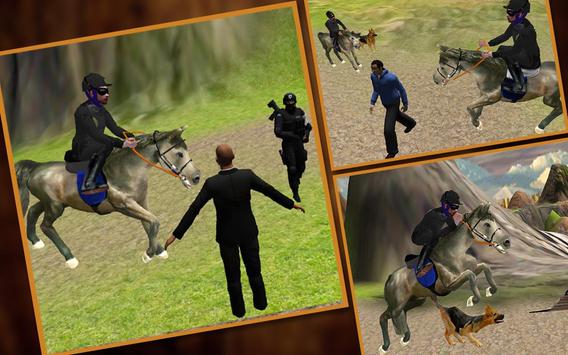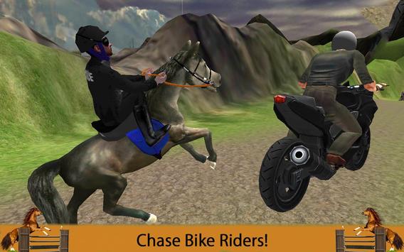 The crime syndicate is making safe house out of city on mountain town across hill top location. Ride on horse racing across hill climb as professional jockey. You play as mounted police office, fulfill your duty to pursuit and catch armed robbers and track them down on off road tracks in hilly environment. Saddle up on horseback and steer wild stallion horse as trained police officer. Chase gangster on bike show your real rider skill in this horse simulator game. Control jumpy horse racing breed of animal to arrest fierce criminals. Gangsters are attacking city civilians on streets and across town. Horses was used in past for royal carriage and transport passengers in a buggy and farming too.