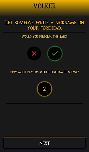 The game chooses by random one person of all who voted „Yes“ who has to do the dare.