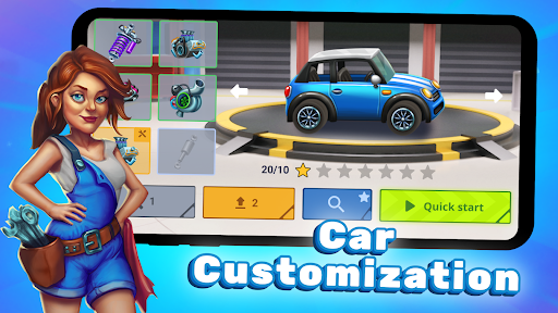 Your own garage. Nothing pleases a real racer like a beautiful car. Build and drive the car of your dreams. Win a dozen of different skins! Buy upgrades for your cars in the store. Collect resources and make a real beauty out of your vehicles.
