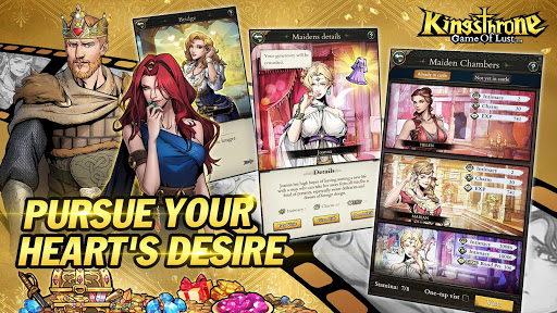 King’s Throne: Game of Lust is an empire simulation MMORPG where you rule a kingdom and experience the medieval royal life: exciting adventures, epic wars, irresistible romance, kingdom management and more than you could imagine! Play for free now, and immerse yourself in playing as a medieval king.