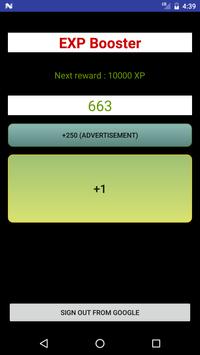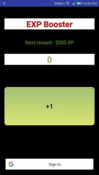 EXP Booster - It is quite a simple application designed for quick and easy way to get EXP and improve your level. All you need to do is click on 1 button and get the treasured EXP. There's a catch though you can only get max 100000 EXP from this application.