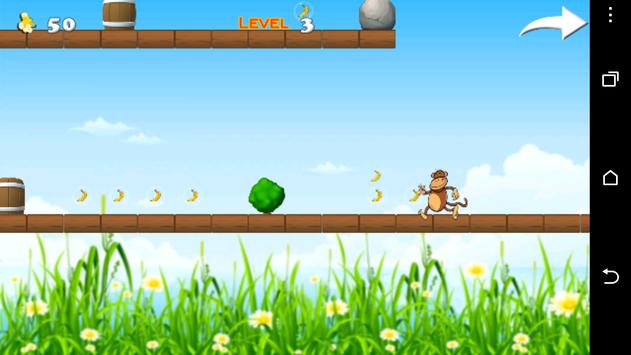 To prevent hunger, the jungle monkey needs to get banana in order to survive. Please help the cute monkey by running and jumping across the level. Monkey like to earn banana but you have to overcome many obstacles like mushroom and obstacles such as rocks and trees that prevent monkey from getting his bananas.
