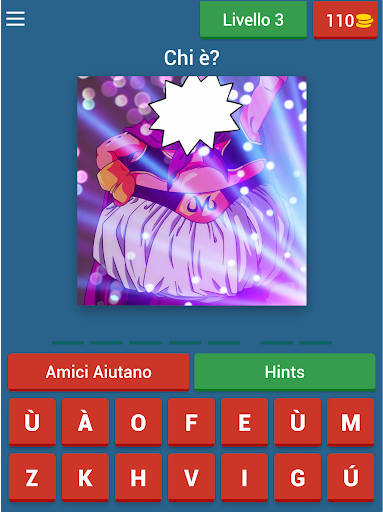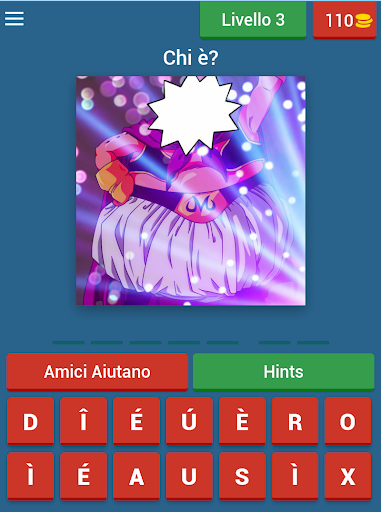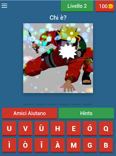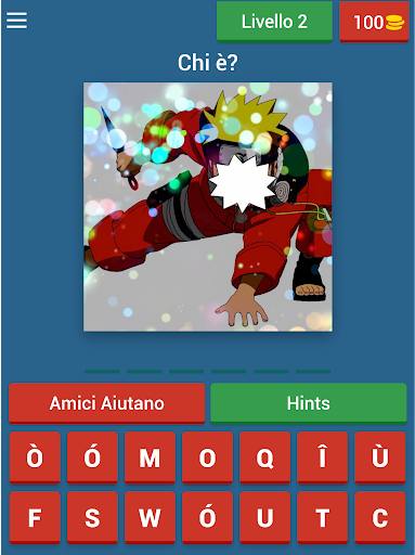 Anime e manga challenge è un gioco in cui dovrai indovinare il personaggio del tuo anime e manga preferito. Avanzerai attraverso livelli con difficoltà crescente e cercherai di lottare per ottenere sempre più monete. Se ti trovi in difficoltà durante il quiz potrsi utilizzare le monete (coins) raccolti nei livelli precedenti per utilizzare gli aiuti. Se siete ancora bloccati potrete chiedere aiuto ai vostri amici su facebook, twitter e what's app. Potete giocare ovunque con questo fantastico quiz che vi metterà alla prova e sfiderà la vostra conoscenza sul mondo anime e manga.