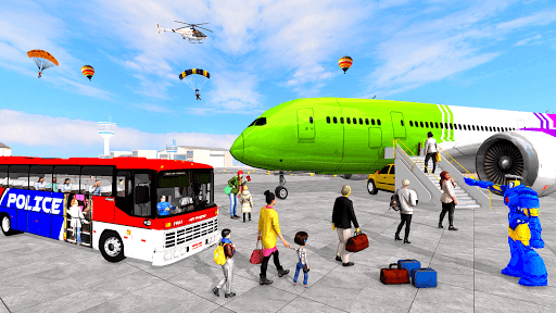 ace the controls and fly realistic police airline robot in this high quality Flight Simulator games 2023.Control your aircraft through endless environments that includes cities, mountains, lakes, oceans and farms, or complete one of many missions available. Aero plane game features realistically modeled airplanes with interior cabins and moving components. This realistic simulator robot game is for all jet fighter games 2023