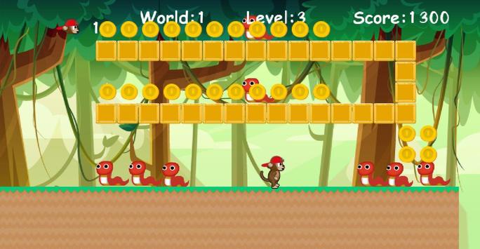 To play you simple touch the screen to jump and touch quickly twice to double jump. You can jump over your enemies to kill them and your goal is to guide the monkey through to the end of the jungle.
