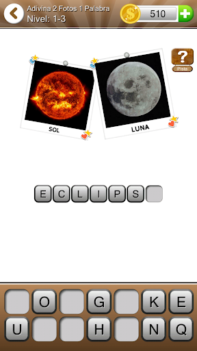 El juego te mostrará 2 fotos, tú debes combinarlas y adivinar la palabra.