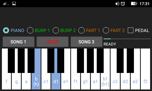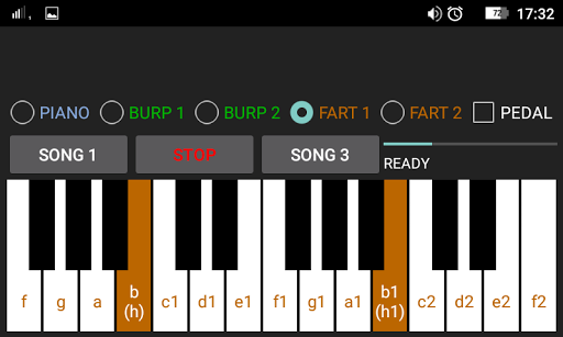 The piano has 5 sounds: PIANO, BURP1, BURP2, FART1, FART2.