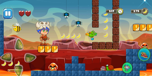 Super Jungle Adventures - Caveman in Prehistoric Game is a classical running and jumping platform game, Super caveman in The jungle of Adventure one of the best jungle and banana adventure games.