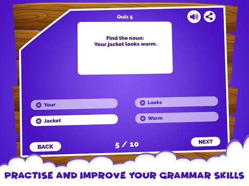 A perfect app for kids to practice the 8 parts of speech: Noun. The activities and quizzes are ideal for all young students who wish to become masters in parts of speech. With variety of sentences and unlimited questions, a child will be a master of English grammar Noun if he/she is a regular user. English grammar Noun app is necessary when you want to improve with this specific part of speech. Grammar apps are of great use for parents and teachers who are seeking for fun ways to establish English grammar learning habits in kids. We should know how vital it is to initiate such skills in young children from an early age and what’s better than fun activities to do so. A perfect way to uplift your child’s noun learning, this app will help build his confidence and improve.