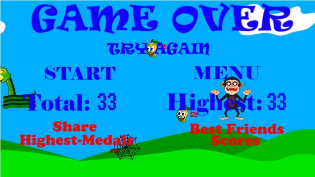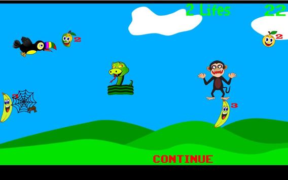 Show your ability and skills by earning points while you keep the toucan bird flying without leaving the screen and without crashing with its predators (snake, spider or monkey).