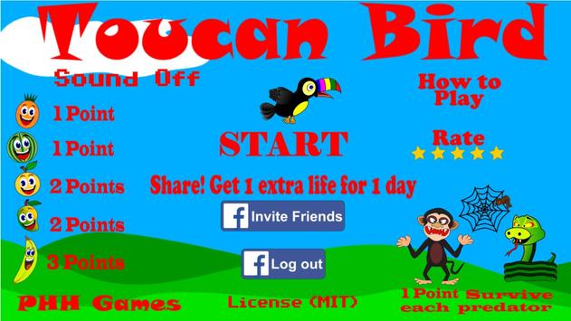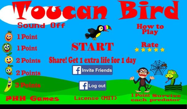 - Button "F Invite Friends" to invite your friends to play Toucan Bird.