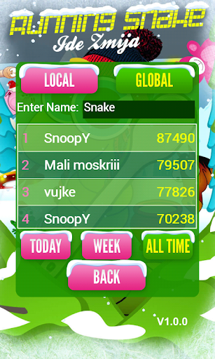Enter your Nick Name to Participate in the Global "Running Snake" High Score List!
