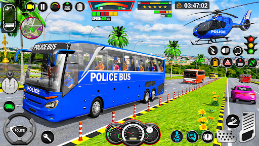 Police Bus Simulator: Ultimate Police Bus Games introduces you to the gameplay of the best realistic environment, real off-road feel, huge cities, villages, and town exposure as a real Police Bus Driver in City Police Bus Simulator: Bus Games. The Coach Bus Driving Bus Simulator Game will also teach you to drive a real US Police Bus across different scenarios. In City Police Bus Games, take passengers from a city to another and show them amazing places and landscapes in Police Bus Simulator: Bus Games. Open world map, incredible vehicles, wonderful interiors will make you feel a realistic Police bus driving experience! The Police Rescue Bus Driving Game gives you the adventurous journey of different offroad tracks for the first time in forever In Police Bus Games.