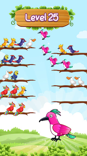 Install “Bird Sort” to have moments of entertainment and exploration with colorful birds. To be the best player help the birds fly away by color sorting and arranging them together on the same branch.