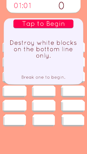 Tap on the white blocks in the lowest row to break them. How far and how much blocks will you break in one minute?