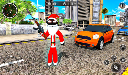 Vegas city is full of gangster crime activities. Play the role of Santa stickman city hero and help Vegas gangster city police for mafia crime simulator. Use your superpowers of Santa stickman rope hero game and fight the real gangster mafia. Your mission for the Santa stickman crime simulator is to eliminate evil clones from the mafia city and make it crime-free. So, start an exciting gangster shooting mission on the crime streets in this Santa stickman rope hero gangster crime game.