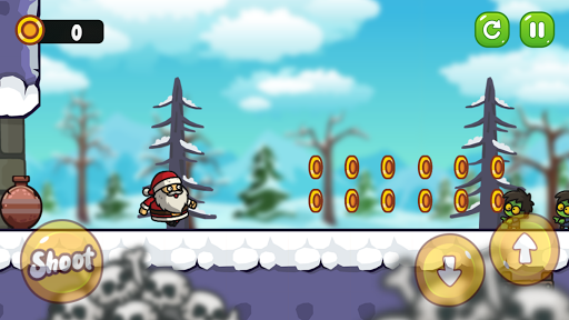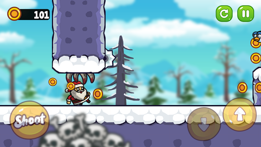 Play as Santa to jump/slide/shoot and clear levels. Collect coins for fancy upgrades!!