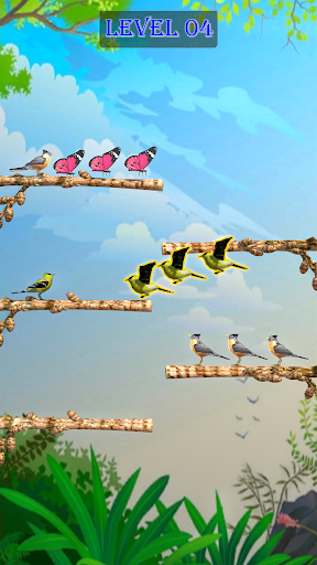 👉 Move the colorful birds by touching it and then touching the branch you want it to move to in color bird sort puzzle