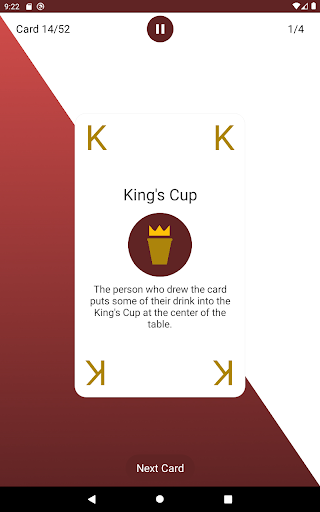 One rule is always the same: If any of the kings gets drawn, the King's Cup in the middle of the table will get filled with a drink.