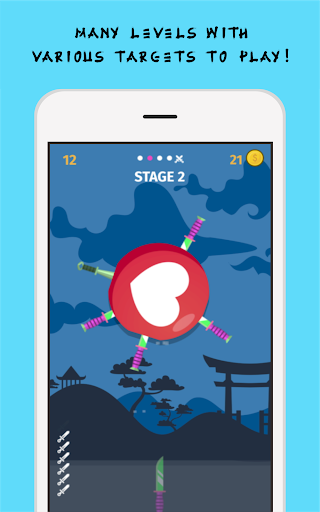 Throw until each kunai sticks to the target. But remember, don't let the kunai throw on the kunai that has been stuck in the target, or the game will lose!