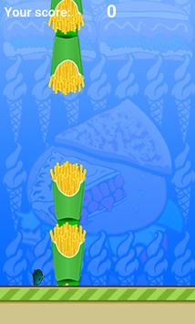 The objective is to direct a flying bird who moves continuously to the right, between tasty boxes of french fries.