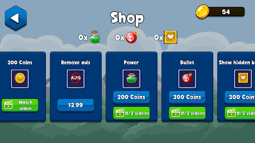 Store with additional items and rewards: unlock worlds before finish other worlds.
