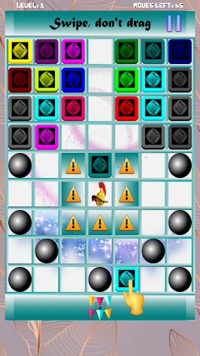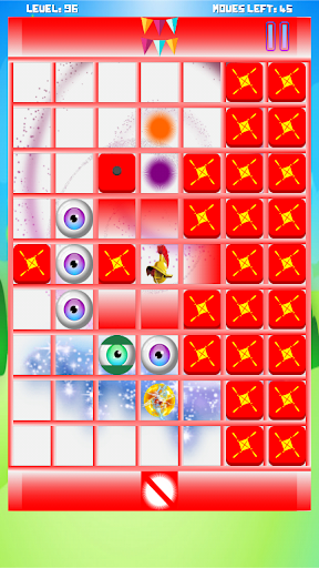 Swipe swiftly (do not drag your finger) on any of the tiles to move them across the board. Use them to push the king to its final destination while also protecting the king from various obstacles in the game. Avoid bombs, fireballs, blackholes, and several other obstacles - don't let them get too close to the king. And yes, avoid those beautiful eyes - they're out to get you!