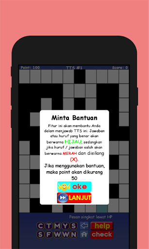 Selesaikan setiap level permainan untuk menyelesaikan TTS ini, mintalah bantuan pada fitur yang telah disediakan apabila anda mengalami kesulitan dalam menjawab pertanyaan