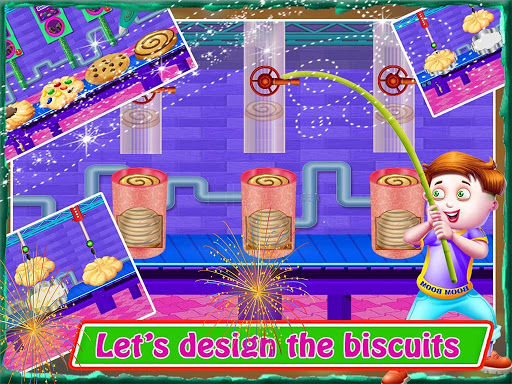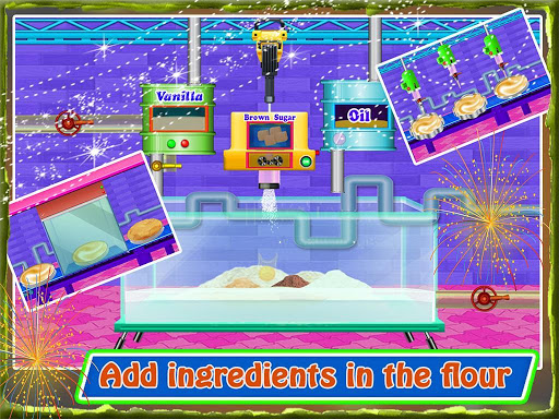 Follow the step by step procedure of the expert cooking chef in the craziest ever cookies factory simulator game. Cookies making is not tough for the chef master like you. Run your factory restaurant and bakery shop in the chef mania and learn to make soft cookie, crunch cookie, jam biscuit making etc. Let’s start how to bake cookies in the star chef’s kitchen. Biscuit maker process starts from the mixing all ingredients like butter, flour, eggs, milk etc. in a big container for cookies cooking. Biscuits factory is ready for cookie making and baking on it’s latest and advanced machinery. After adding all ingredients in a big container, blend them well with grinding machine and send the mixture to the cookies baking department through chute. Bake the biscuits in oven for more crisp and crunch but do not burn it by overheating. After cooking cookie and biscuits, little chef will start it decoration. Decorate your biscuit factory’s kitchen product with fruit jam or chocolate chips to enhance the taste.