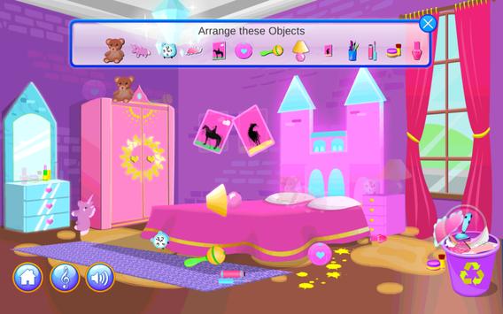Could you help us to clean up the little princess bedroom Pick up all the dirty candy packages, newspapers, and throw it away. Wipe away the spiderwebs, clean the dust and vacuum the floor! And make the princess happy